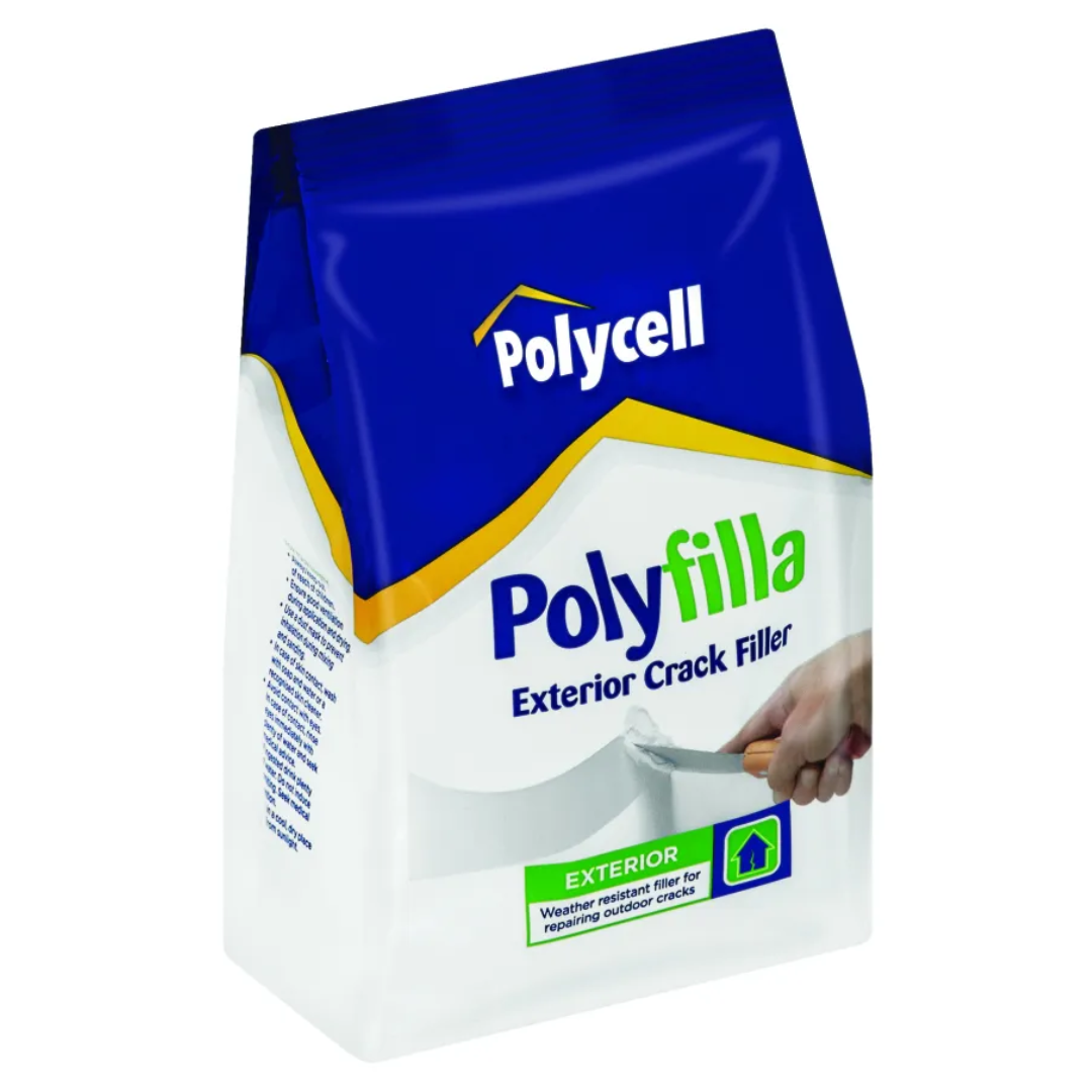 Polyfilla exterior is recommended for crack repairs to all exterior masonry, concrete, stone and stucco cement rendering. It can also be used for repairing brickworks, corners and surfaces. For filling small holes, imperfections and suitably primed cracks.