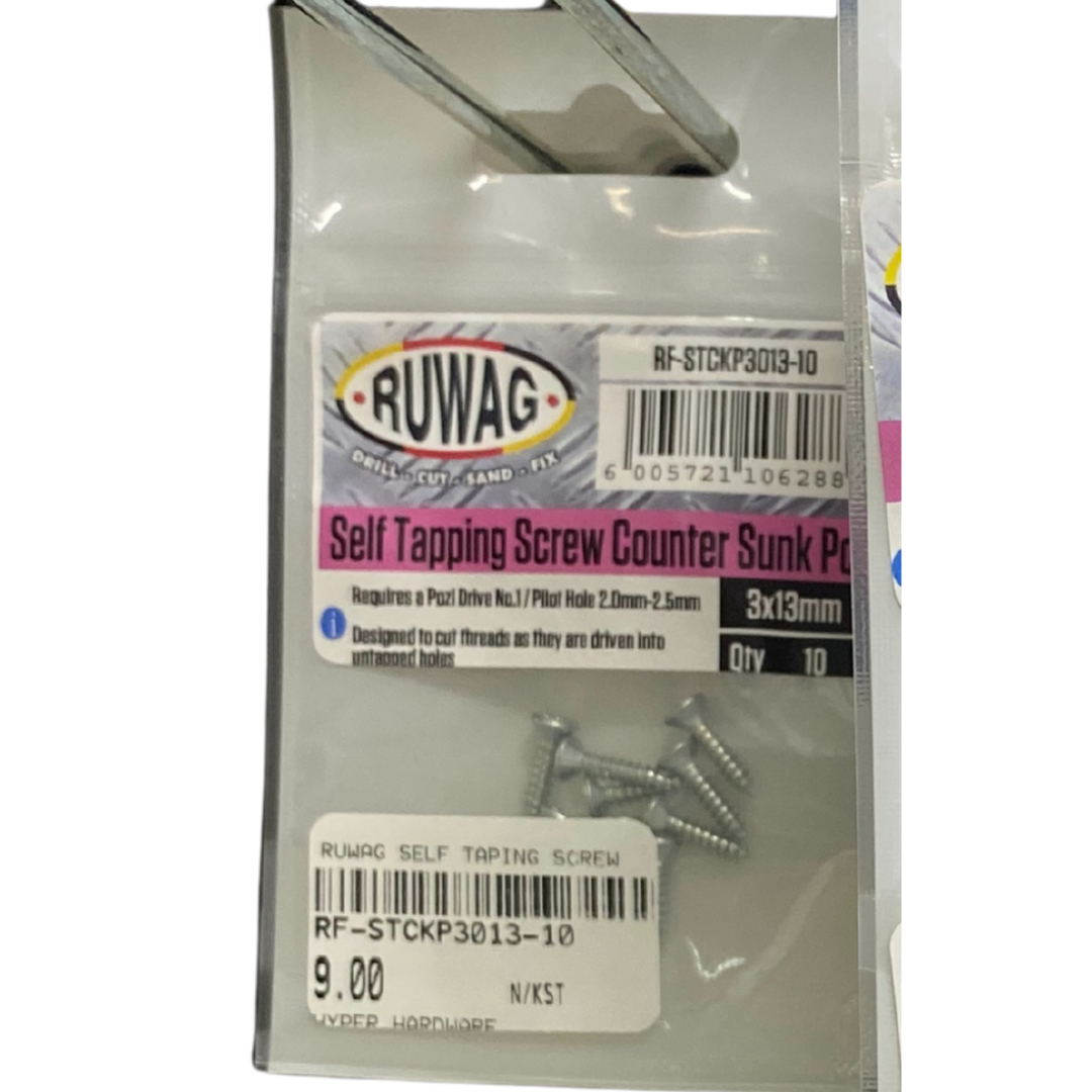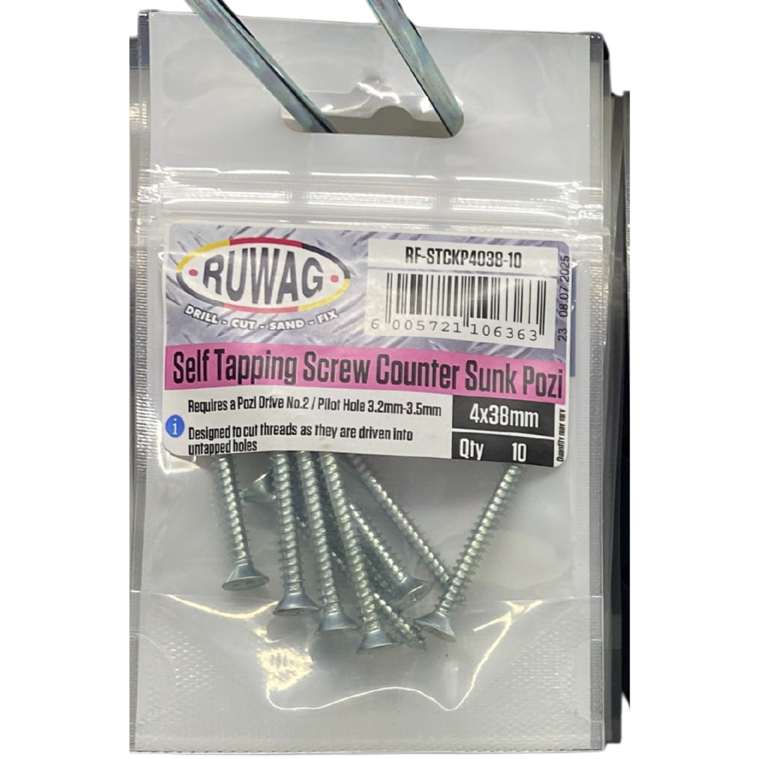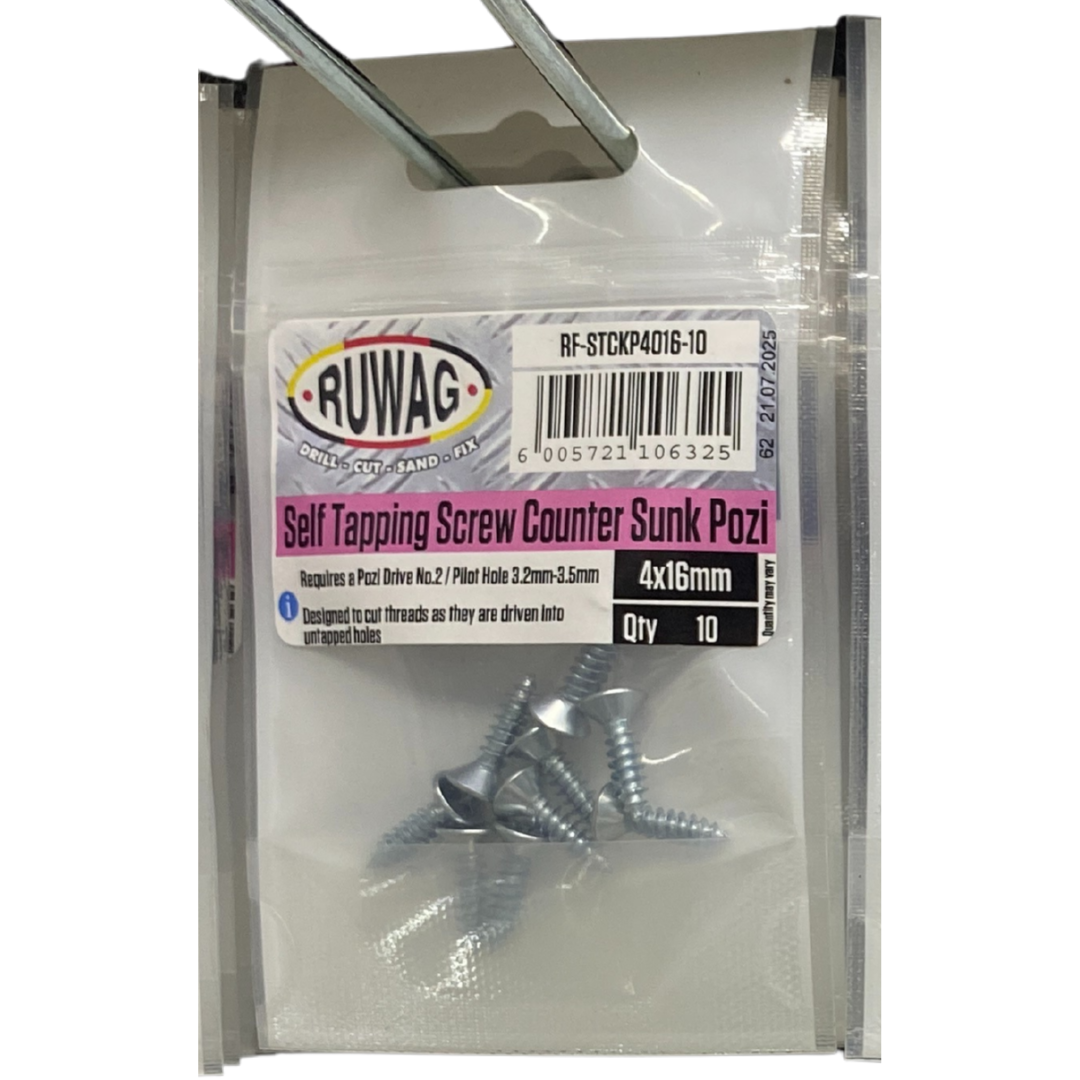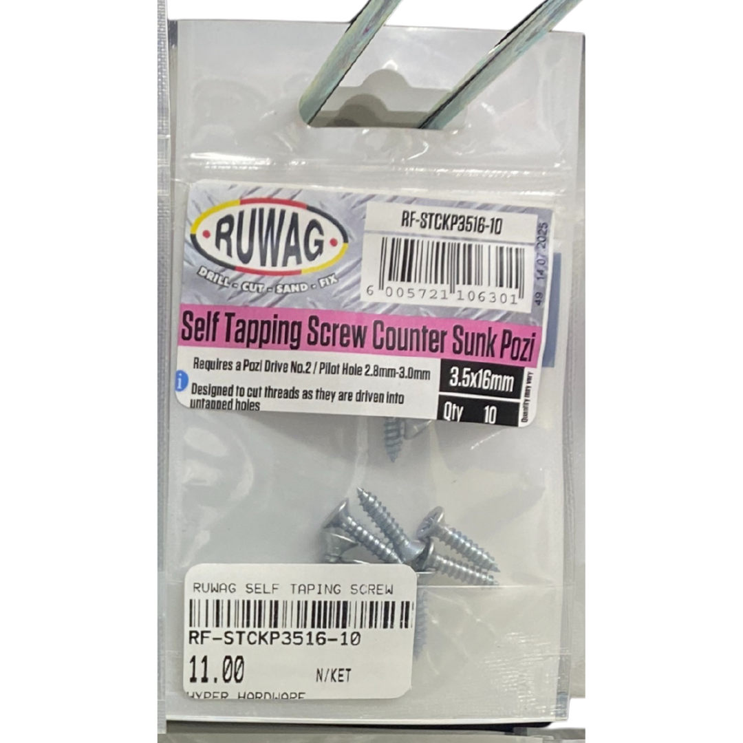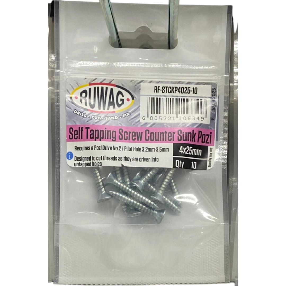 Ruwag Self Tapping Screw Counter Sunk Pozi (Pack of 10)